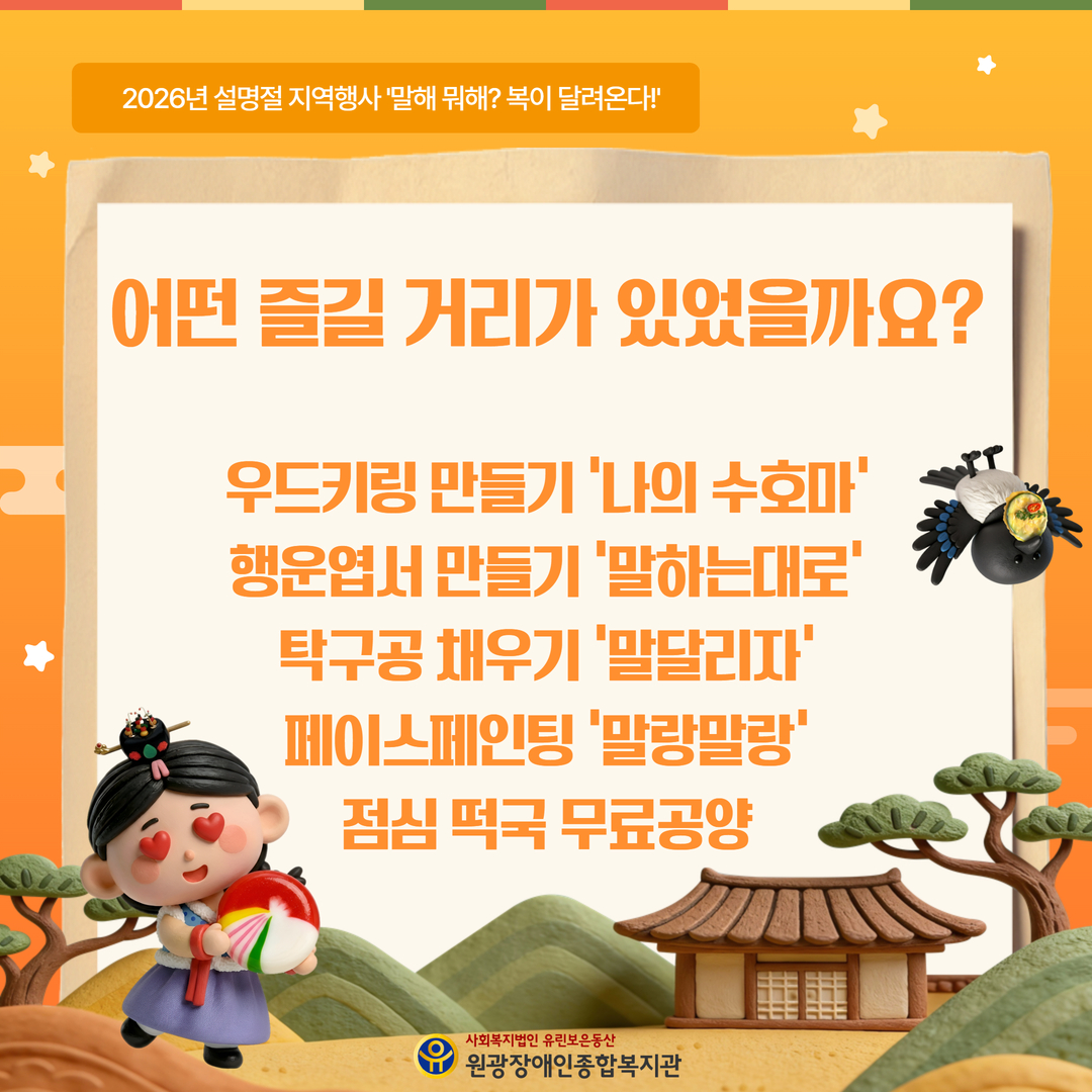 [원광장애인종합복지관] 2026년 설명절 지역행사 ☞말(馬)해 뭐해? 복(福)이 달려온다!☜