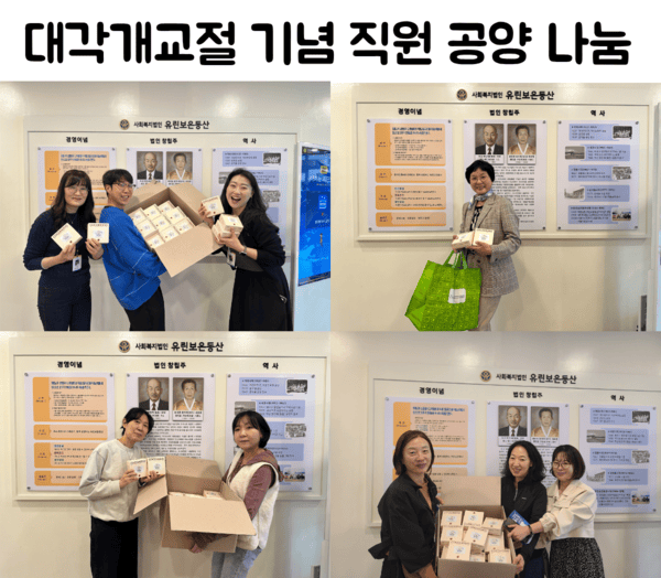 원불교 대각개교절을 맞이하여 유린보은동산 산하시설 임직원들을 위한 간식을 나눔하였습니다.