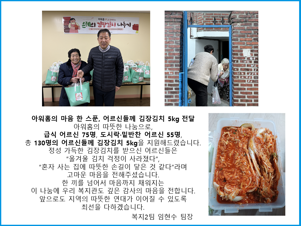 [유린원광종합사회복지관] 아워홈과 함께하는 은혜의 김장김치 나누기
